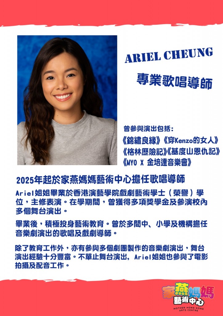 *2017年開始於家燕媽媽藝術中心教授演藝訓練